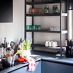 מיקרוגל, קומקום חשמלי ותנור גם כן כלולים במטבח.
